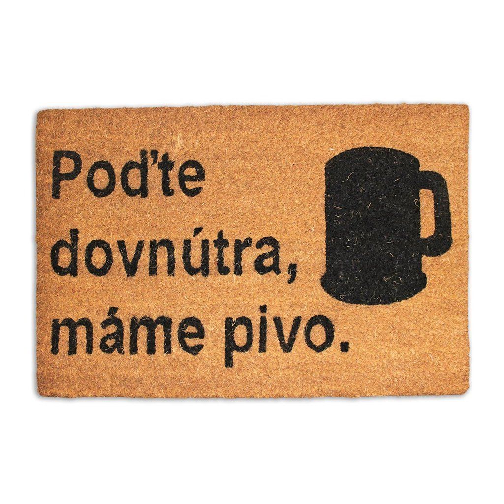 Rohožka s vtipným textem "Pojďte dovnútra, máme pivo." vyzývá k návštěvě. Probouzí v nás veselost i chuť se bavit a vypít třeba jedno pivo. Může být vtipným dárkem pro vaše kamarády. I tato veselá rohožka je nutným praktickým pomocníkem pro udržení čistoty.