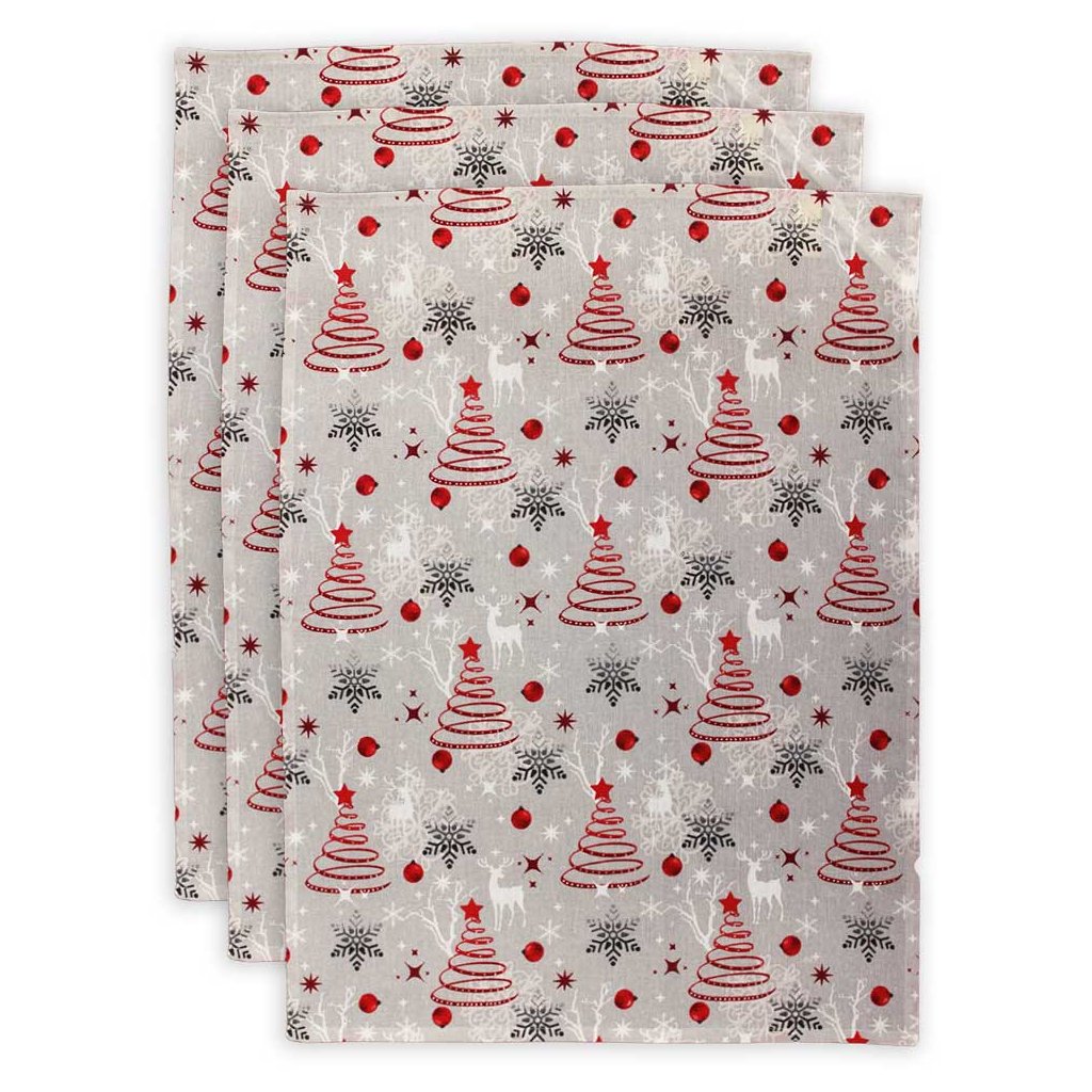 Utěrka v sadě 3 kusů je součástí naší kolekce s vánočními motivy na šedém pozadí. Pro sladěnou kuchyň můžete mít z našeho eshopu další kuchyňský textil se stejným motivem a ve stejných barvách.