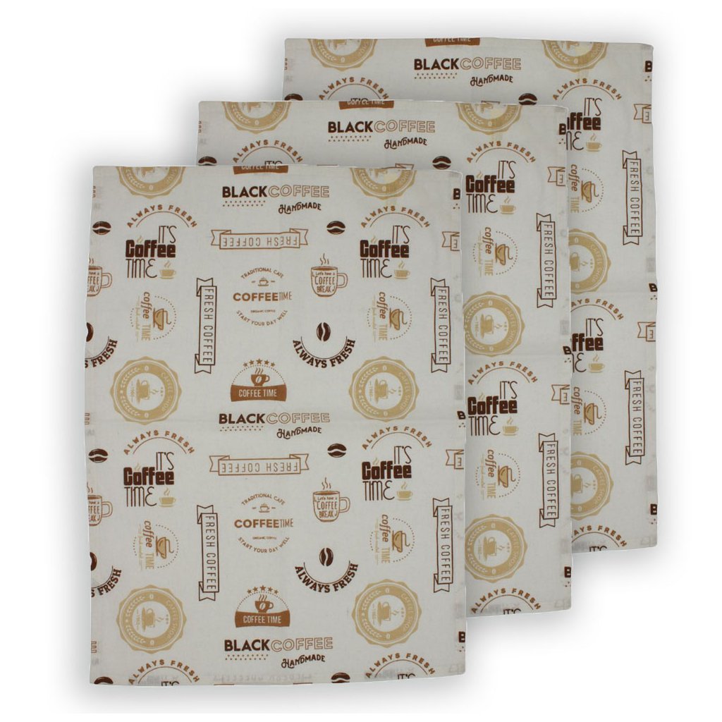 Sada 3 kusů kuchyňských utěrek, 50*70 cm, barva béžová a bílá s kávovými motivy.