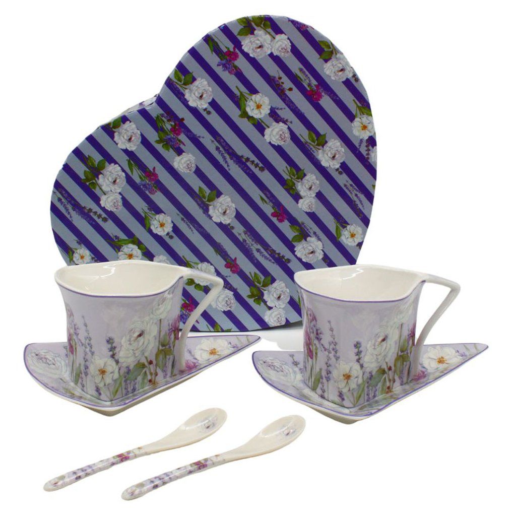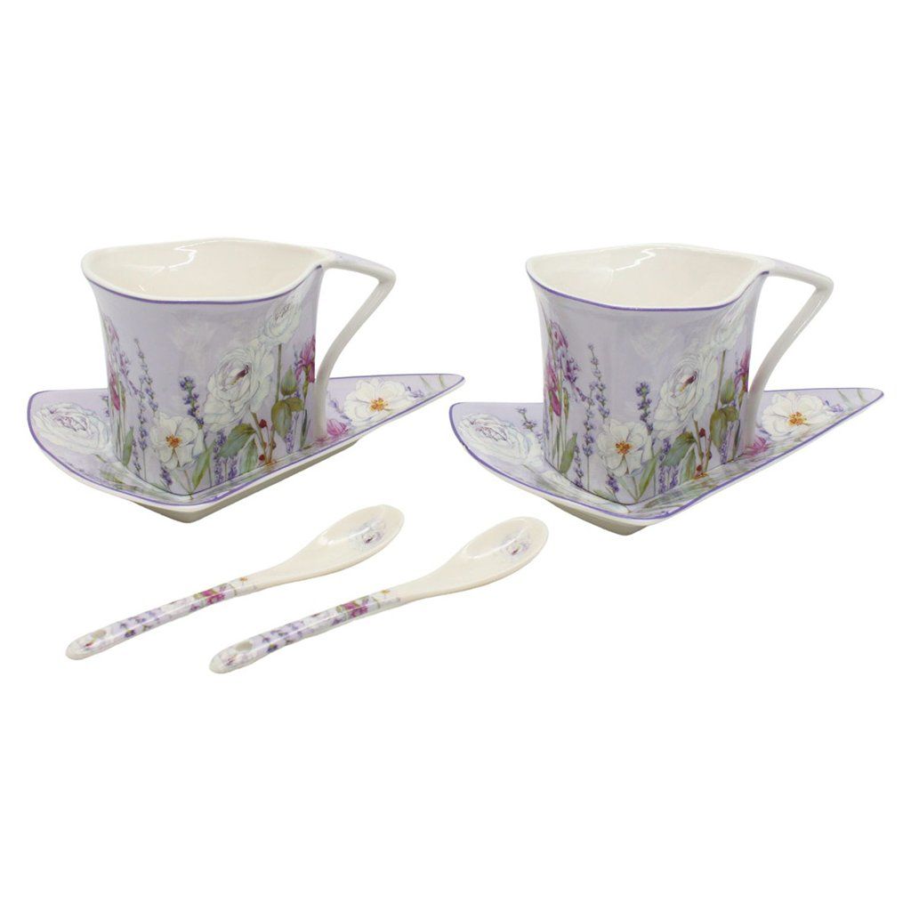 Šálky s podšálky a lžičkami tvarované 2 x 250 ml, Levandule Home Elements