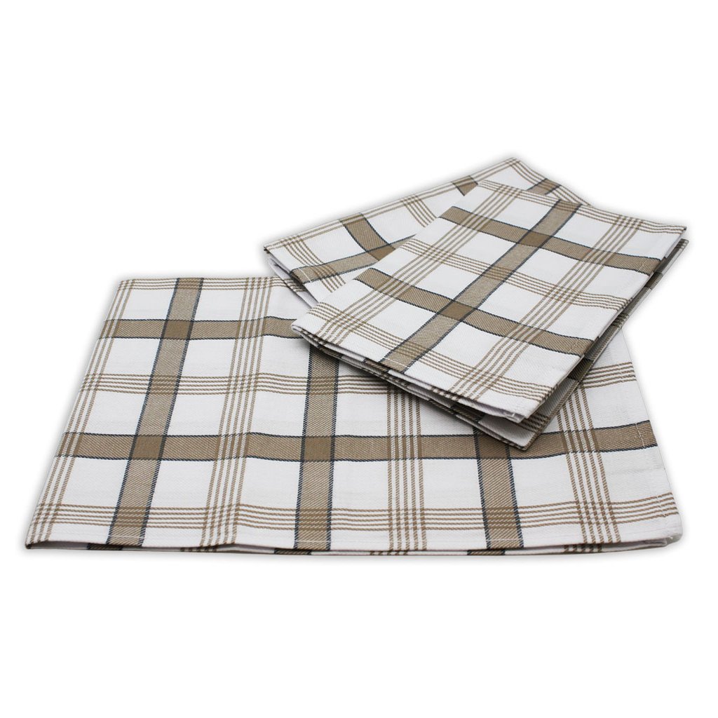 Sada 3 kusů kuchyňských utěrek z kvalitní egyptské bavlny, 50*70 cm, motiv Kostky, hnědé