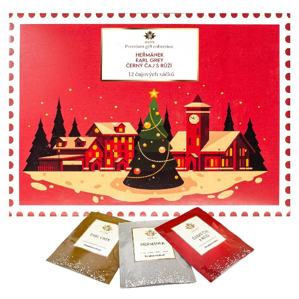 - Vánoční čaj v obálce (24 g) – směs černého a zeleného čaje ze Srí Lanky ve třech příchutích: heřmánek, Earl Grey a černý čaj s růží. Dárkové vánoční balení obsahuje 12 čajových sáčků (3 × 4 kusy). Bez alergenů.