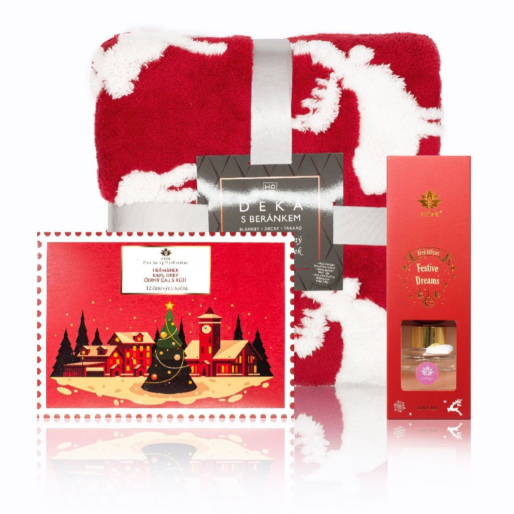 vánoční set - losí deka, čaj v obálce a difuzér |