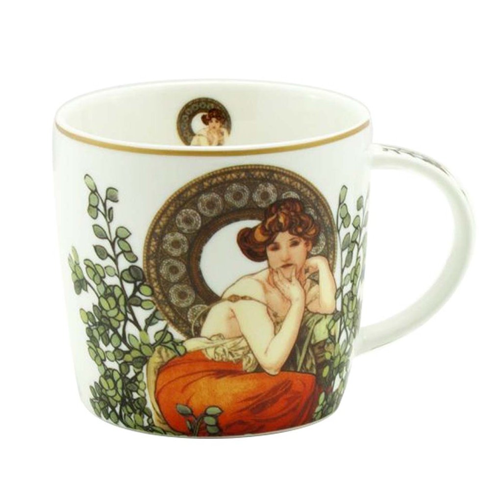 Krásný porcelánový hrníček s motivem slavného obrazu od Alfonse Muchy. Dodáváno v designovém kartonovém přebalu s odnosným poutkem.