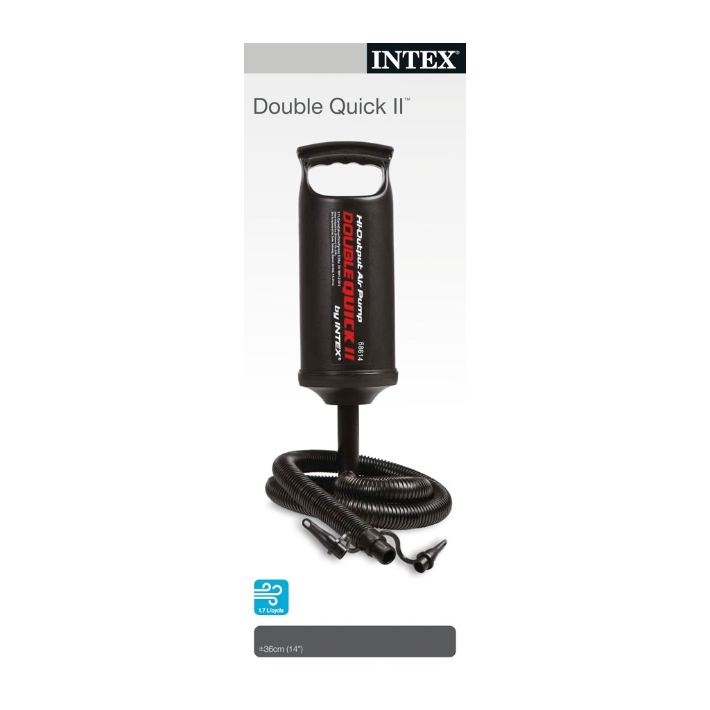 Ruční pumpa Double Quick obsahuje tři nástavce na různé velikosti ventilů, takže ji snadno využijete u široké škály outdoorového vybavení. Pumpa od proslulého výrobce Intex je dvojčinná, takže tlakuje vzduch v obou směrech pohybu. Lze s ní nafouknout malé hračky, balony, rukávky, matrace a nafukovačky.