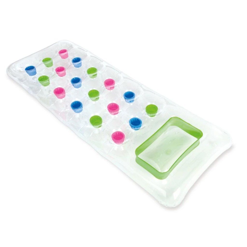 Nafukovací opalovací lehátko s průhledným oknem a zabudovaným polštářem je vyrobeno z průhledného a pevného vinylu. Transparentní materiál vám umožní sledovat dění pod vodou. Lehátko je ideální pro relaxaci na vodní hladině, na pláži či u bazénu.
