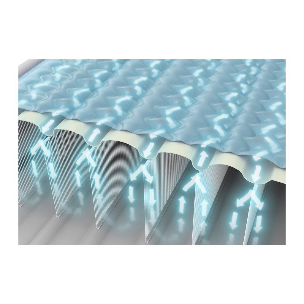 Nafukovací lůžko je vyrobeno vláknovou technologií Fiber-Tech™- jako vnitřní desky nejsou použity přepážky z PVC, ale tisíce odolných polyesterových vláken, díky čemuž si zachovává lepší rovnováhu a správný tvar. Vrchní vrstva je sametová, příjemná na dotek. Nafukovací postel je vysoká 46 cm, což usnadňuje ulehání a vstávání z postele.