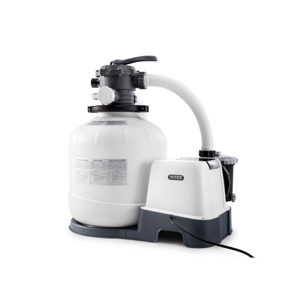 Vysoce výkonná filtrace pro všechny INTEX bazény. Křemičitý písek, který klade protékající vodě z bazénu přirozený odpor, zachycuje v mezerách většinu nečistot. Vyčištěná voda se pak opět vrací zpět do bazénu. Písková filtrace a její princip se používá i při čištění pitných vod. Kvalitní výkonná písková filtrace Intex Krystal Clear se zabudovaným solinátorem zajistí optimální filtraci pro váš bazén a omezí používání bazénové chemie. Tato filtrace přefiltruje 10 m3 bazénové vody za hodinu.