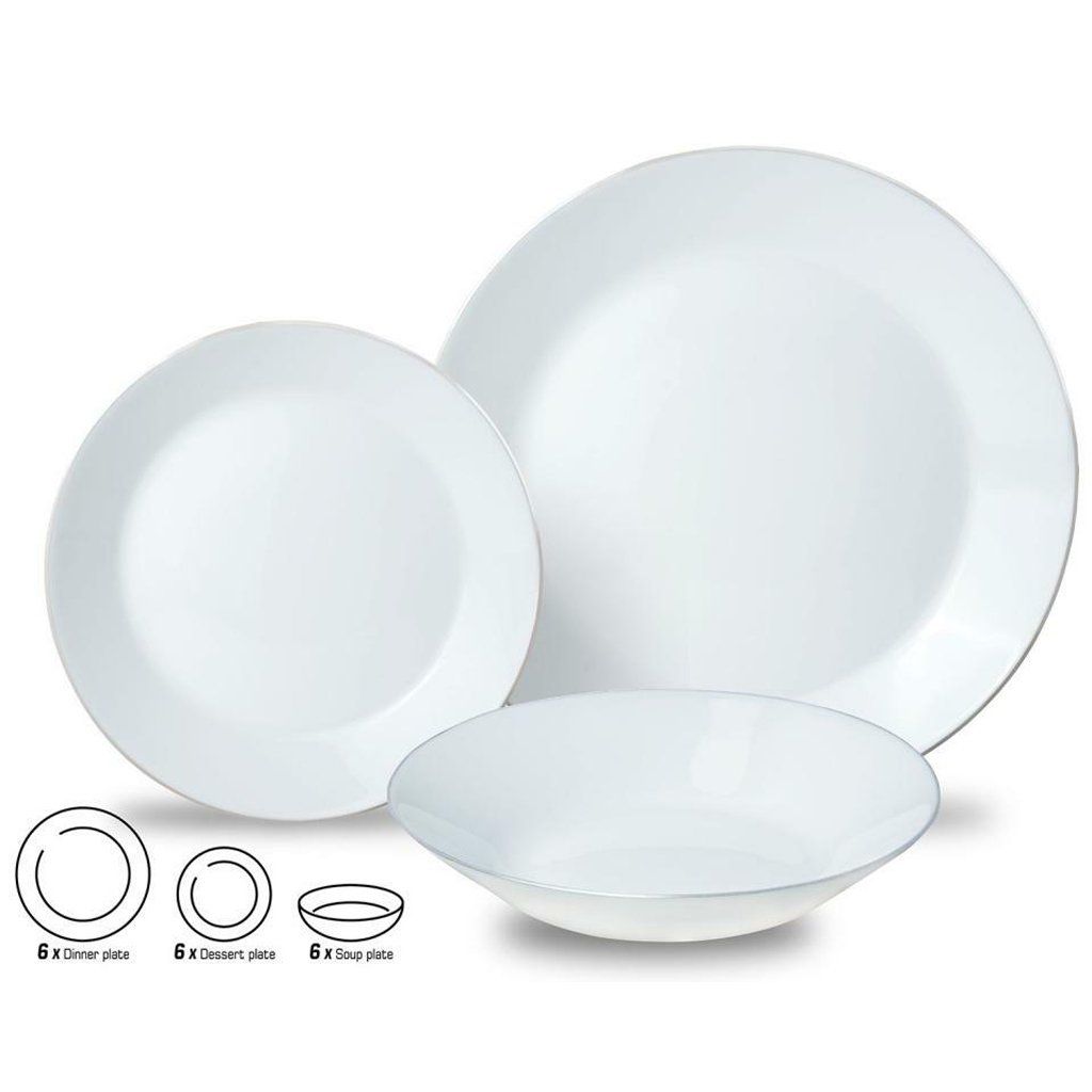 Dopřejte si dokonalý zážitek z každého jídla se stylovou sadou porcelánových talířů, která spojuje klasickou estetiku s moderní funkčností. Jemné stříbrné lemování a precizní zpracování dodávají celé sadě nádech luxusu a výjimečnosti – ideální jak pro každodenní stolování, tak slavnostní večeře s rodinou a přáteli.