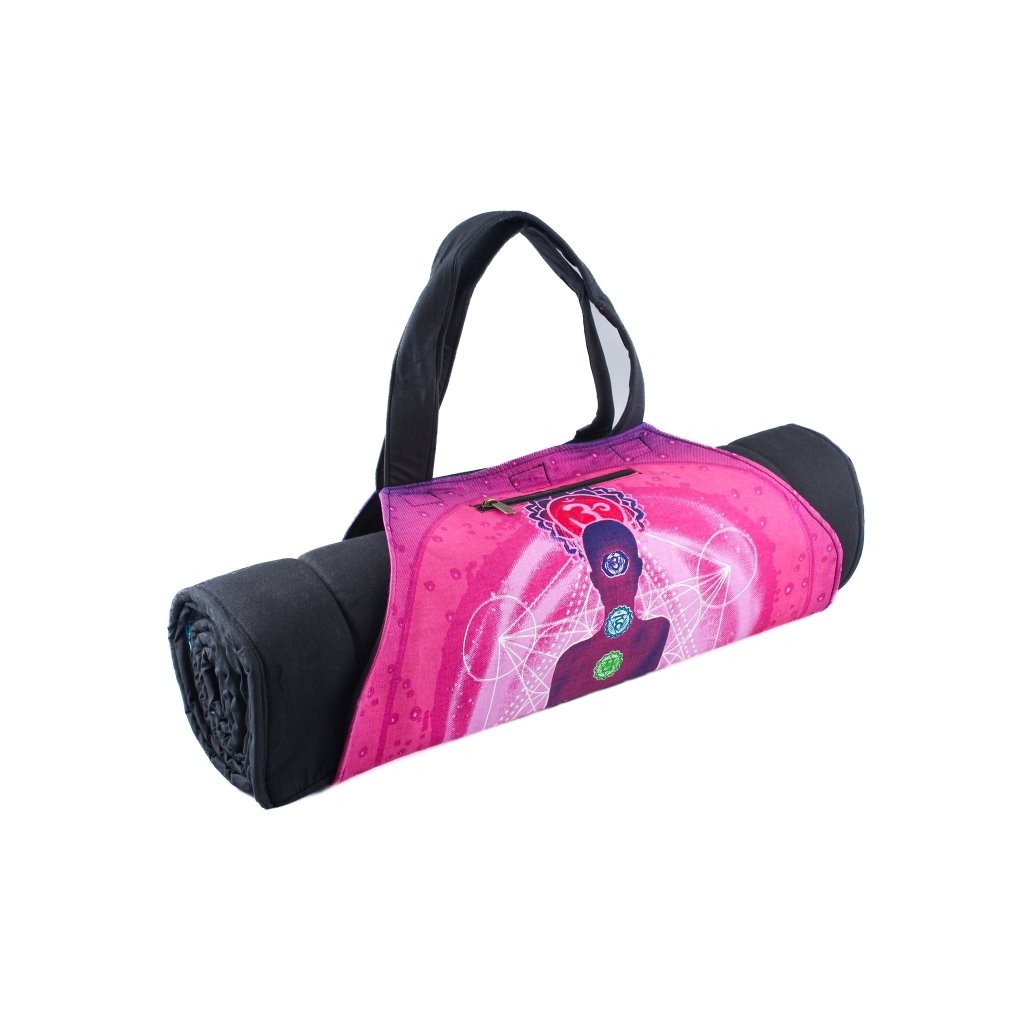 Taška na joga podložku s popruhem je ručně vyráběná s krásným potiskem.