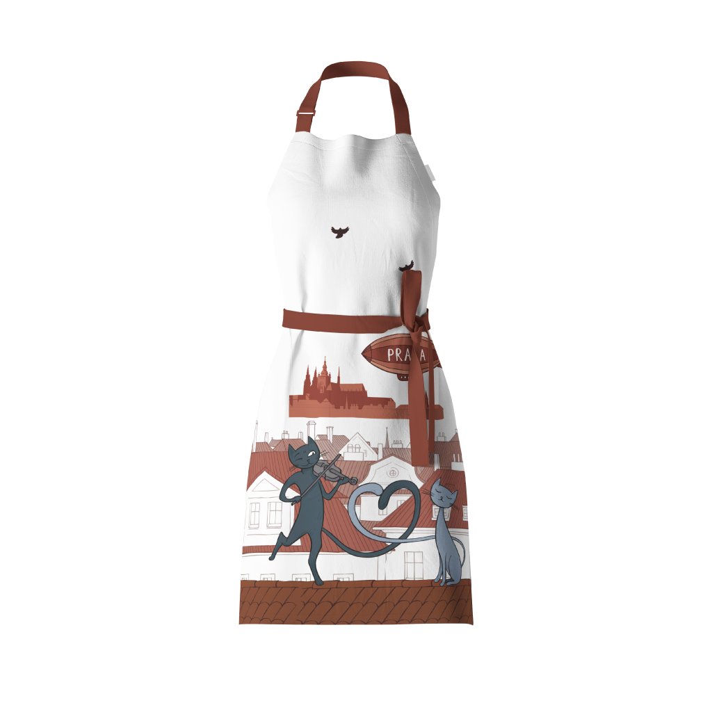 Slušivá kuchyňská zástěra s originálním motivem koček a Pražského hradu je praktická nejen při vaření, ale skvěle poslouží i jako dárek se vzpomínkou na Prahu.