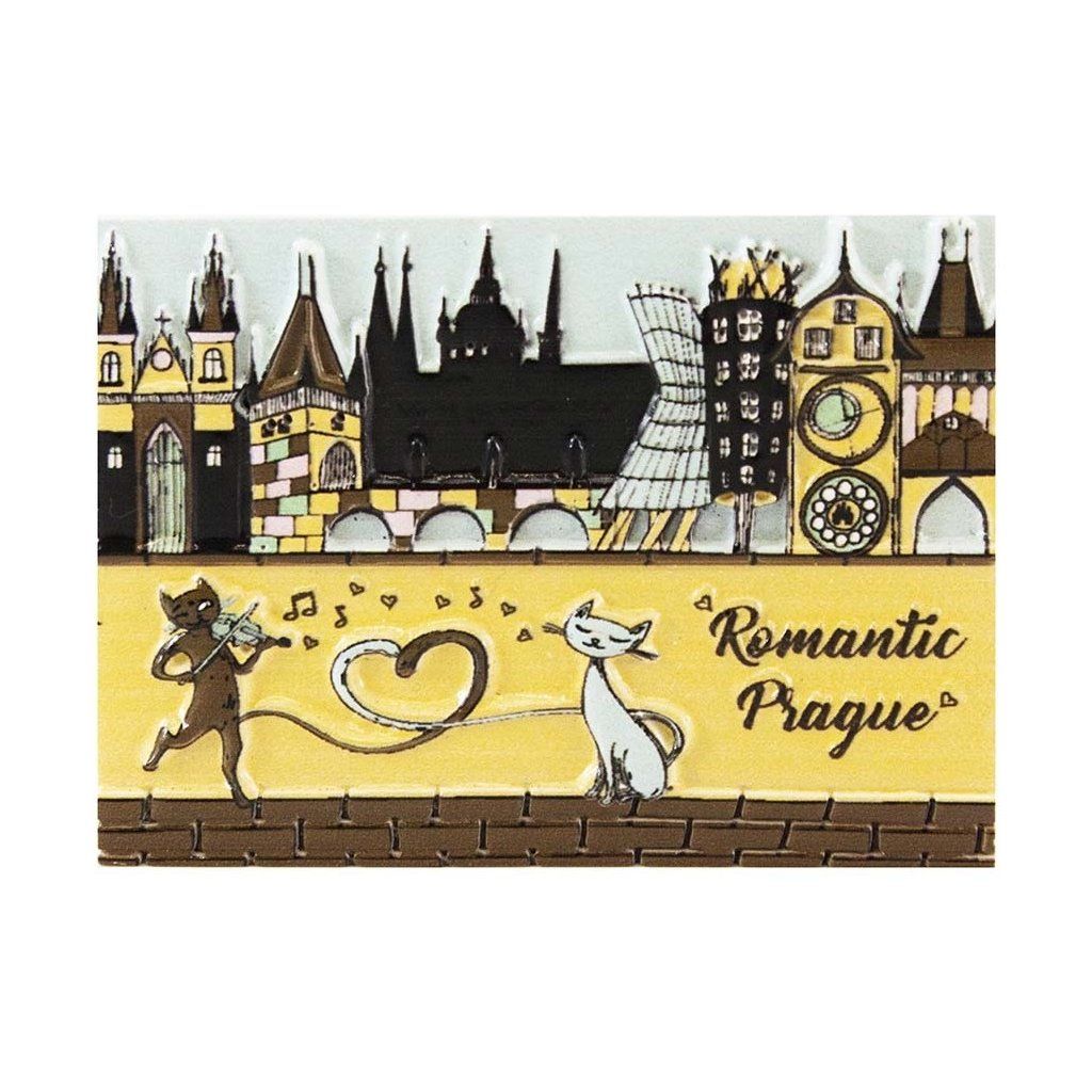 Magnet s motivem koček v Praze a nápisem „Romantic Prague“ je stylový suvenýr, který spojuje romantickou atmosféru hlavního města s hravým designem. Ideální jako drobný dárek nebo dekorace na lednici.