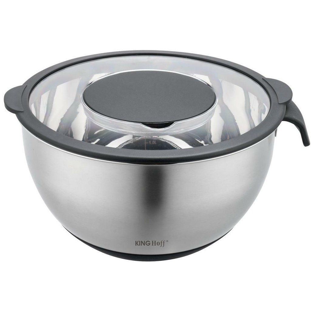 - Víko s otvorem pro snadné plnění nebo míchání – ručně nebo pomocí metly elektrického mixéru. Silikonový okraj víka umožňuje vzduchotěsné uzavření mísy.