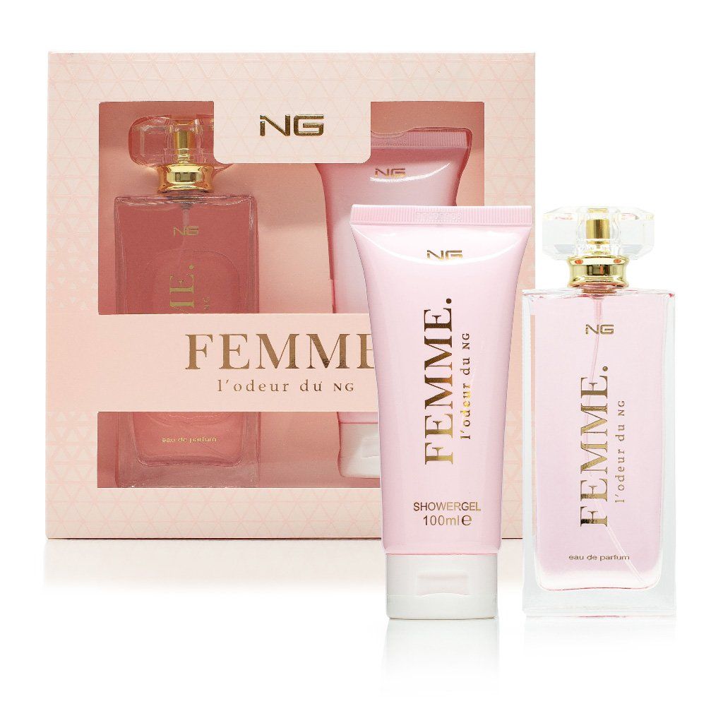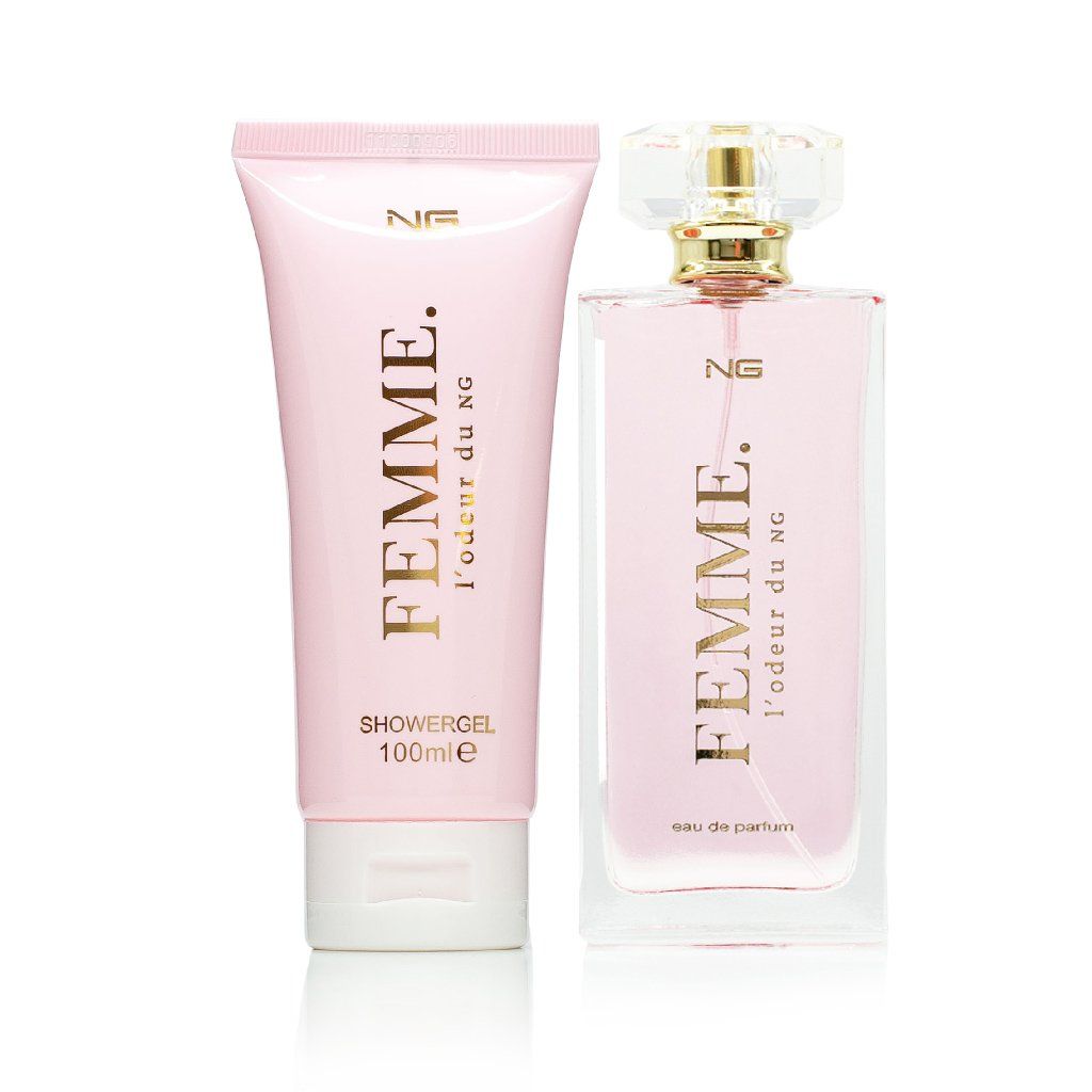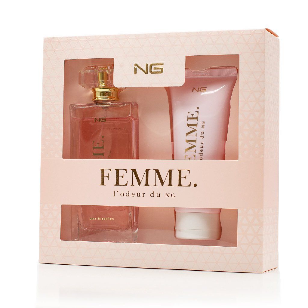 Dárková sada pro ženy obsahuje parfémovanou vodu 100 ml a sprchový gel 100 ml s vůní Femme L Odeur du NG