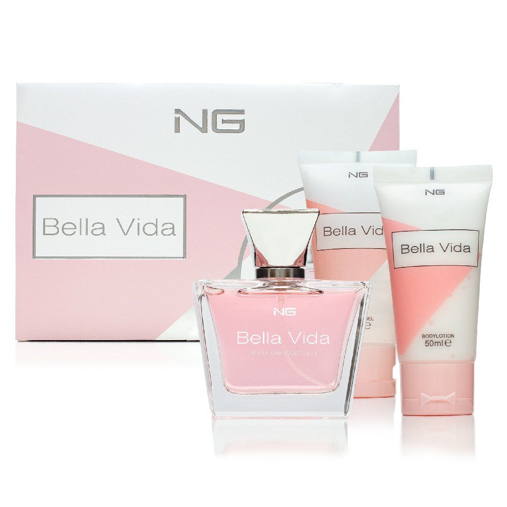 Elegantní dárkový set Bella Vida je určen pro ženy, které milují svěžest, jemnost a pozitivní energii. Spojuje v sobě harmonii ovocno-květinových tónů s hřejivými akordy, které zanechávají dlouhotrvající dojem ženskosti a elegance. Vůně černého rybízu a hrušky se jemně prolínají s květem pomerančovníku a jasmínem, zatímco pačuli a kosatec dodávají kompozici hloubku a smyslnost.