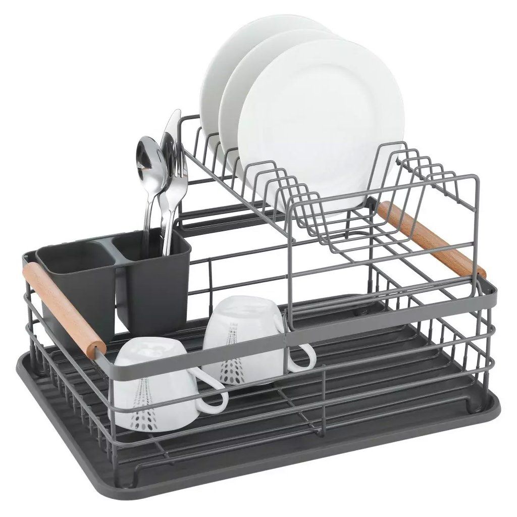 Odkapávač nádobí má na obou stranách praktické dřevěné úchyty, které lze použít i k zavěšení kuchyňských utěrek.