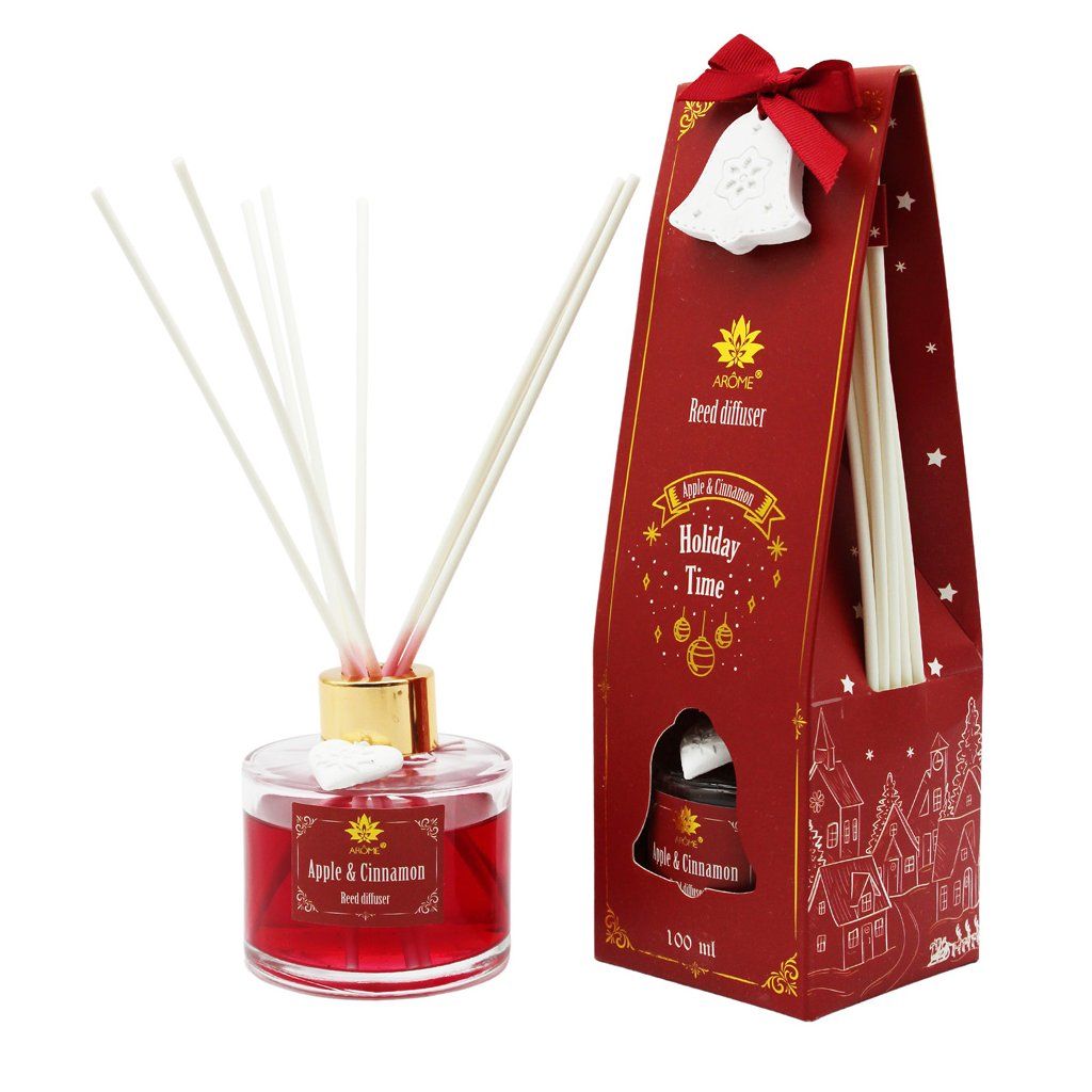 Osvěžovač vzduchu v podobě tyčinkového difuzéru s vůní jablka a skořice. I v koupelně, v obývacím pokoji nebo třeba na chodbě to může krásně vonět.