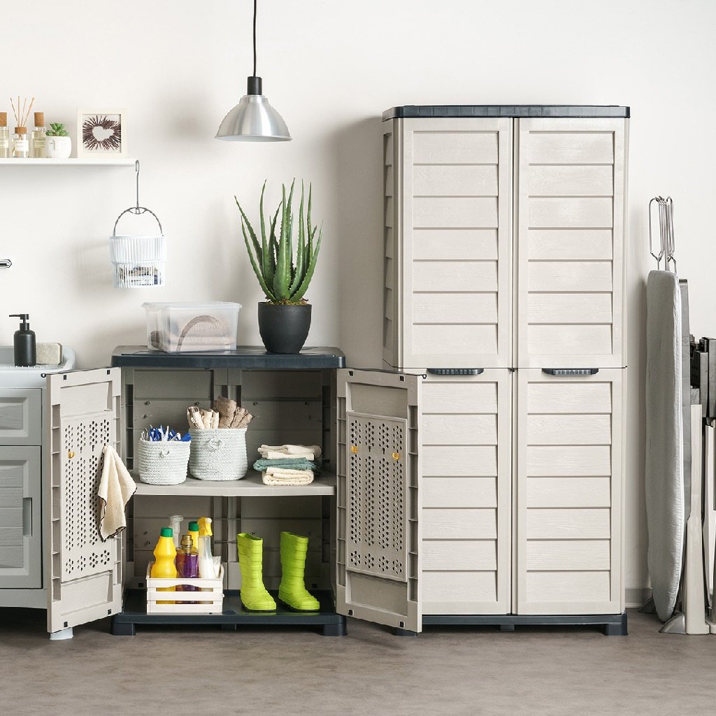 Vysoká úložná skříňka Riponi je praktickým řešením pro efektivní organizaci a maximální využití prostoru. Díky svému štíhlému a vysokému provedení nabízí dostatek úložného místa a zároveň se snadno uplatní v domácnosti, dílně, garáži, na terase i na zahradě.