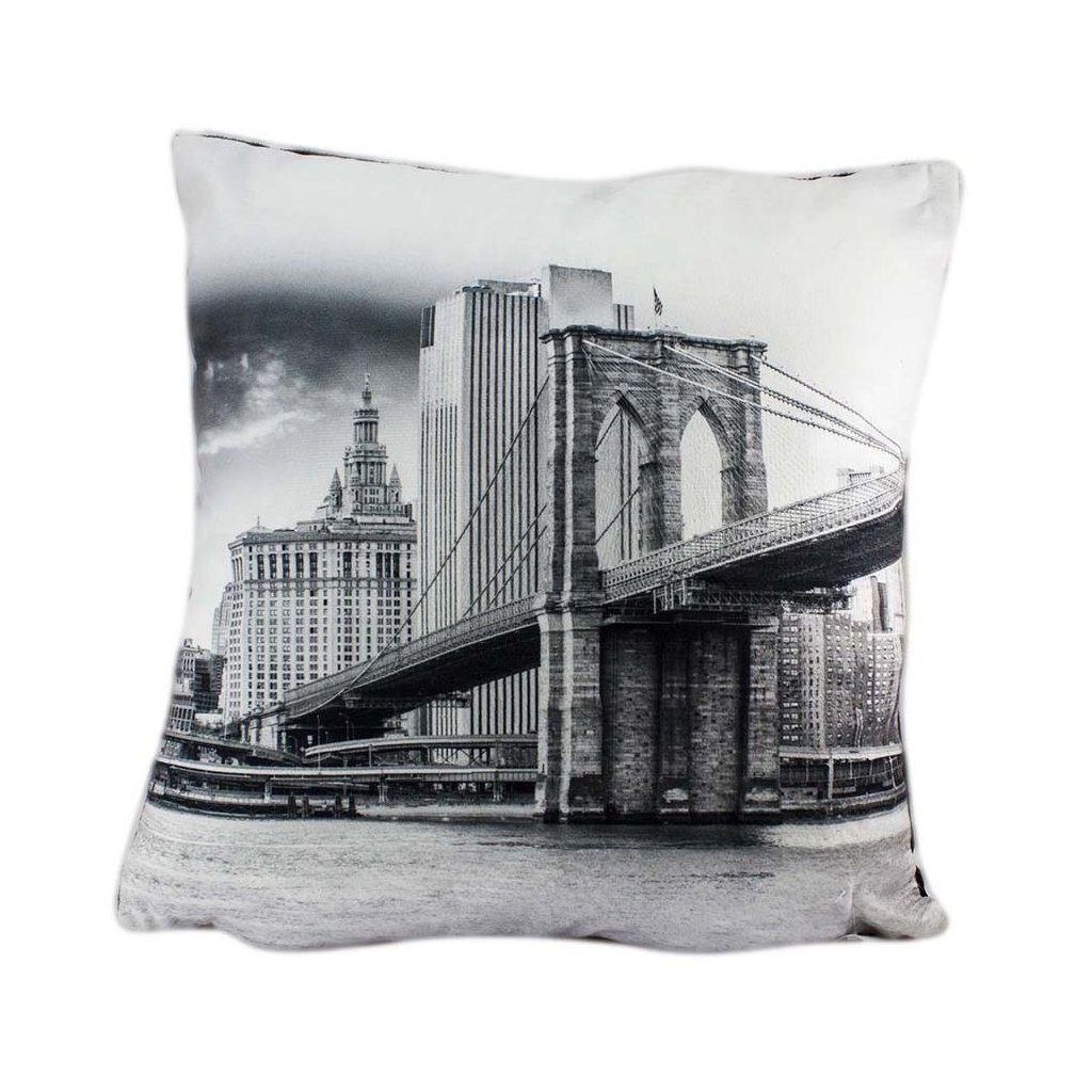 Mít kousek New Yorku doma můžete i v podobě polštářku s fotografií Manhattanu.