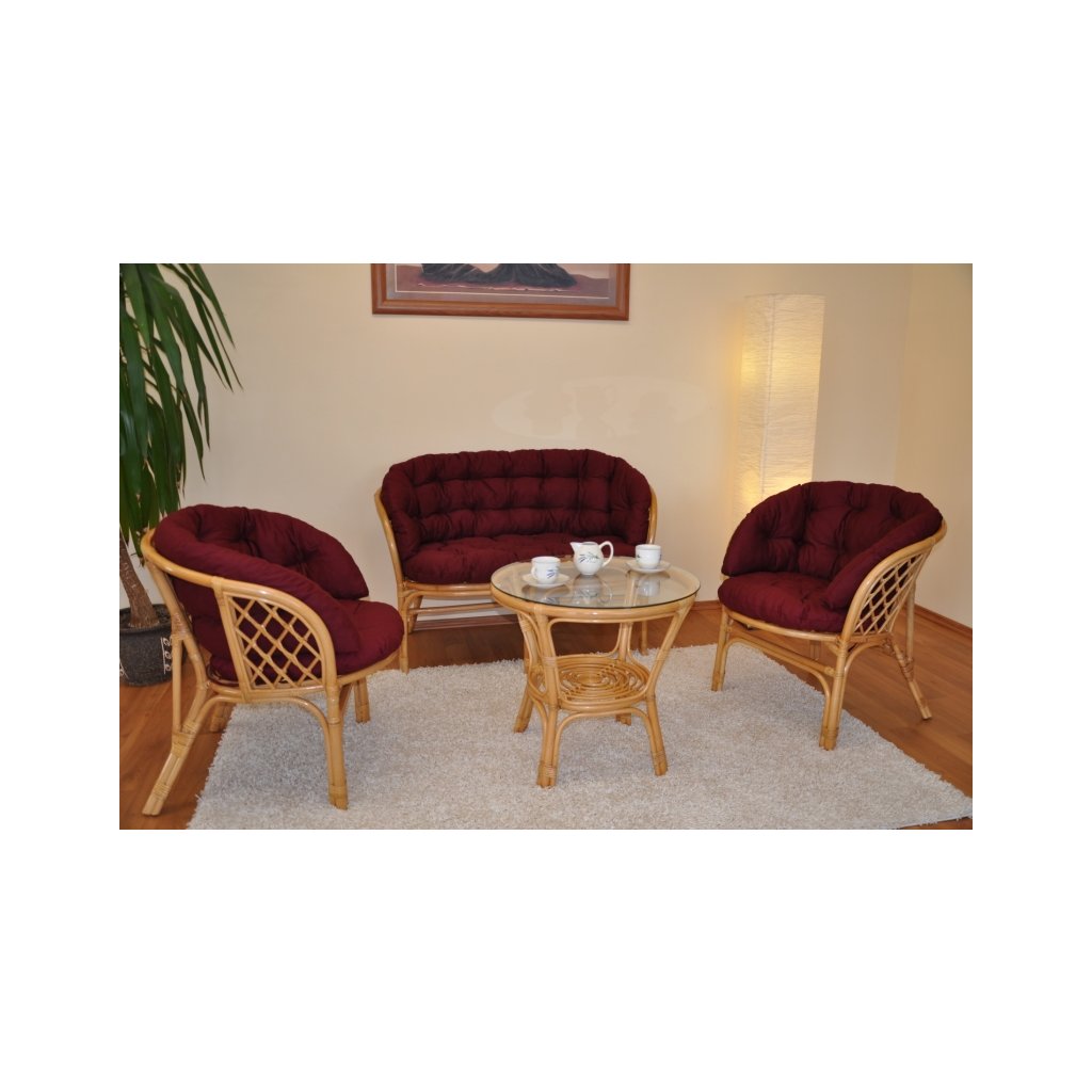 Ratanová sedací souprava Bahama velká medová polstr vínový MAXI Axin Trading s.r.o.