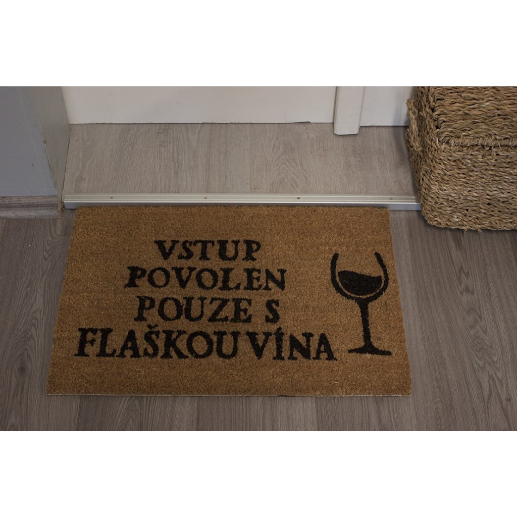 Rohožka s originálním textem: "Vstup povolen pouze s flaškou vína". Skvěle poradí, co přinést na návštěvu. Rohožka je jako stvořená pro dárek na kolaudaci.