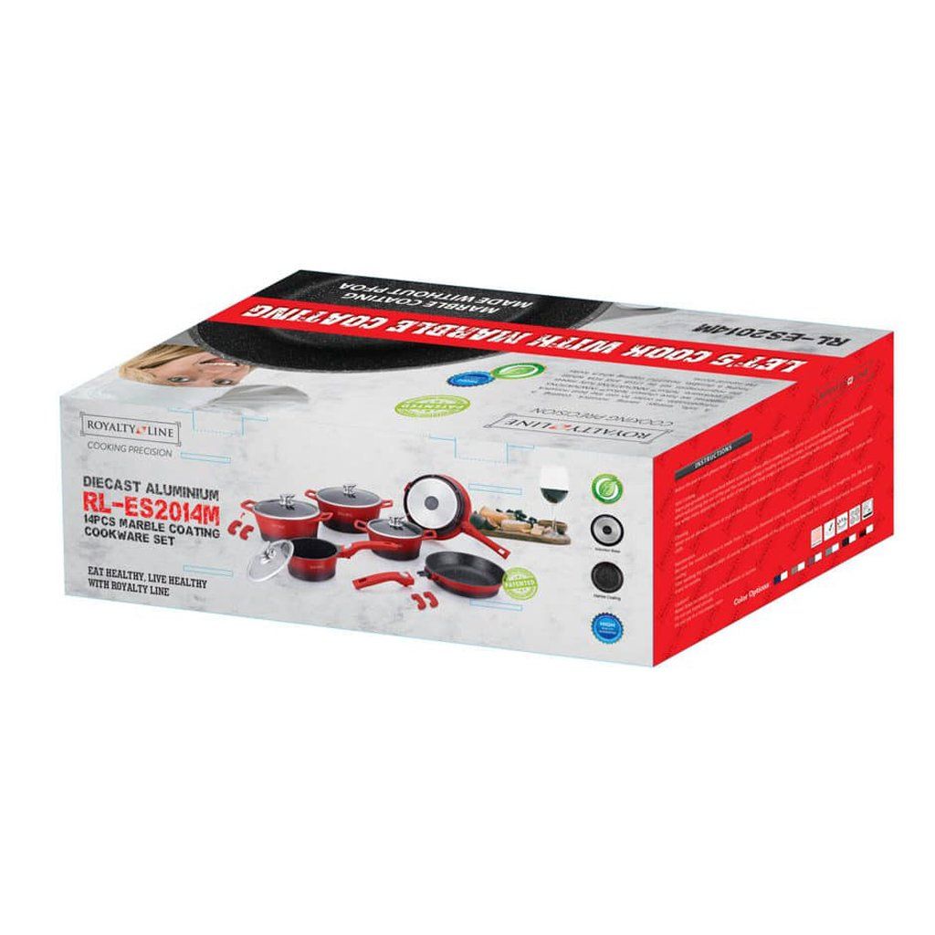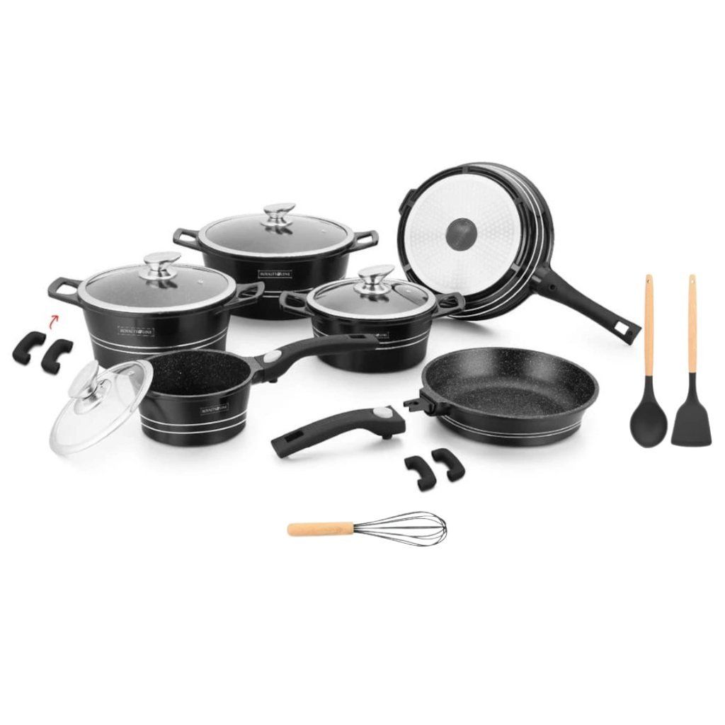 Sada kuchyňského nádobí ROYALTY je vyrobena z litého hliníku. Nádobí ROYALTY se vyznačuje vysoce kvalitním provedením hrnců s antibakteriálním nepřilnavým mramorovým povrchem, které je zárukou zdravého vaření. Díky nepřilnavému povrchu připravíte zdravá i dietní jídla jen s minimálním množstvím tuku. Zesílené dno umožňuje rovnoměrné rozvádění tepla a díky vynikající tepelné vodivosti je teplo rozprostřeno i rychleji. Nádobí je vhodné na indukční varné desky.