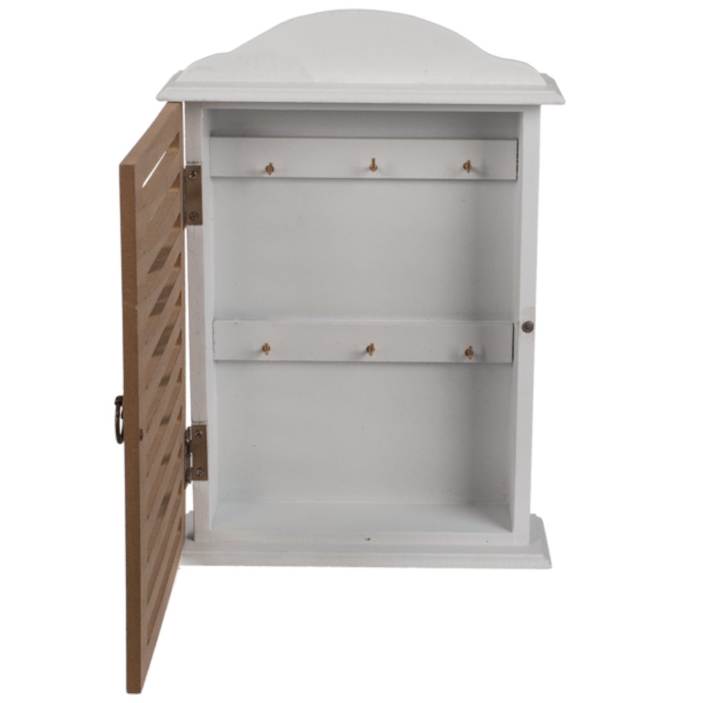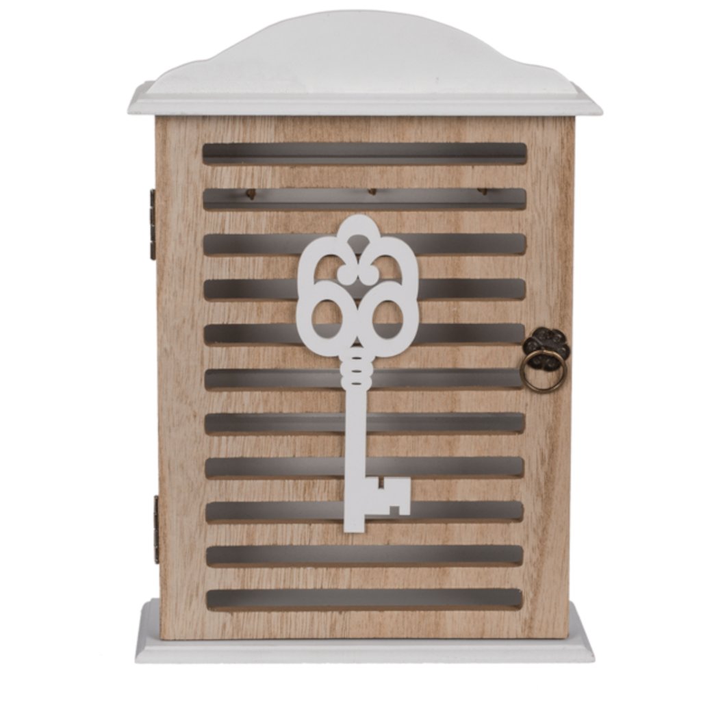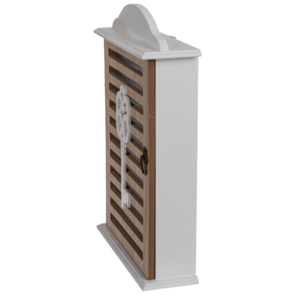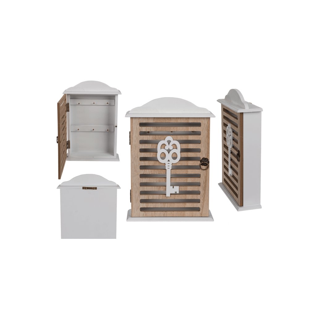 Praktická a dekorativní. Klíče budou mít své stálé místo, takže skončí problémy s hledáním klíčů po domě. Skříňka má 6 háčků na zavěšení klíčů.