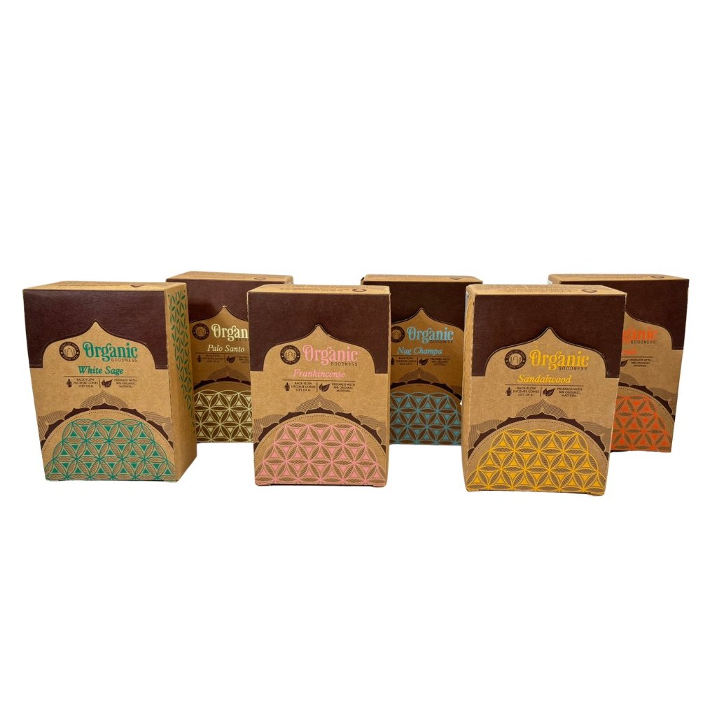 Vonné kužele řady Organic Goodness s efektem backflow vytváří kouř, který je těžší než vzduch. Dým tak klesá a prochází otvory stojanu a vytváří dojem tekoucího dýmu. Pokoj se naplní příjemnou uklidňující vůní Nag Champa.
