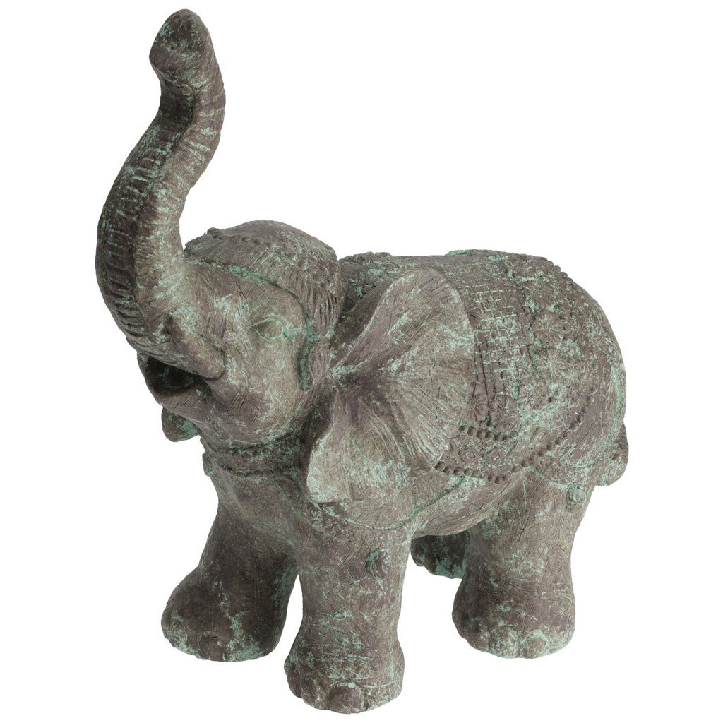 Tato soška slona je vyrobena z odolného materiálu magnesia. Má starožitnou povrchovou úpravu. Je vhodná i pro venkovní použití.