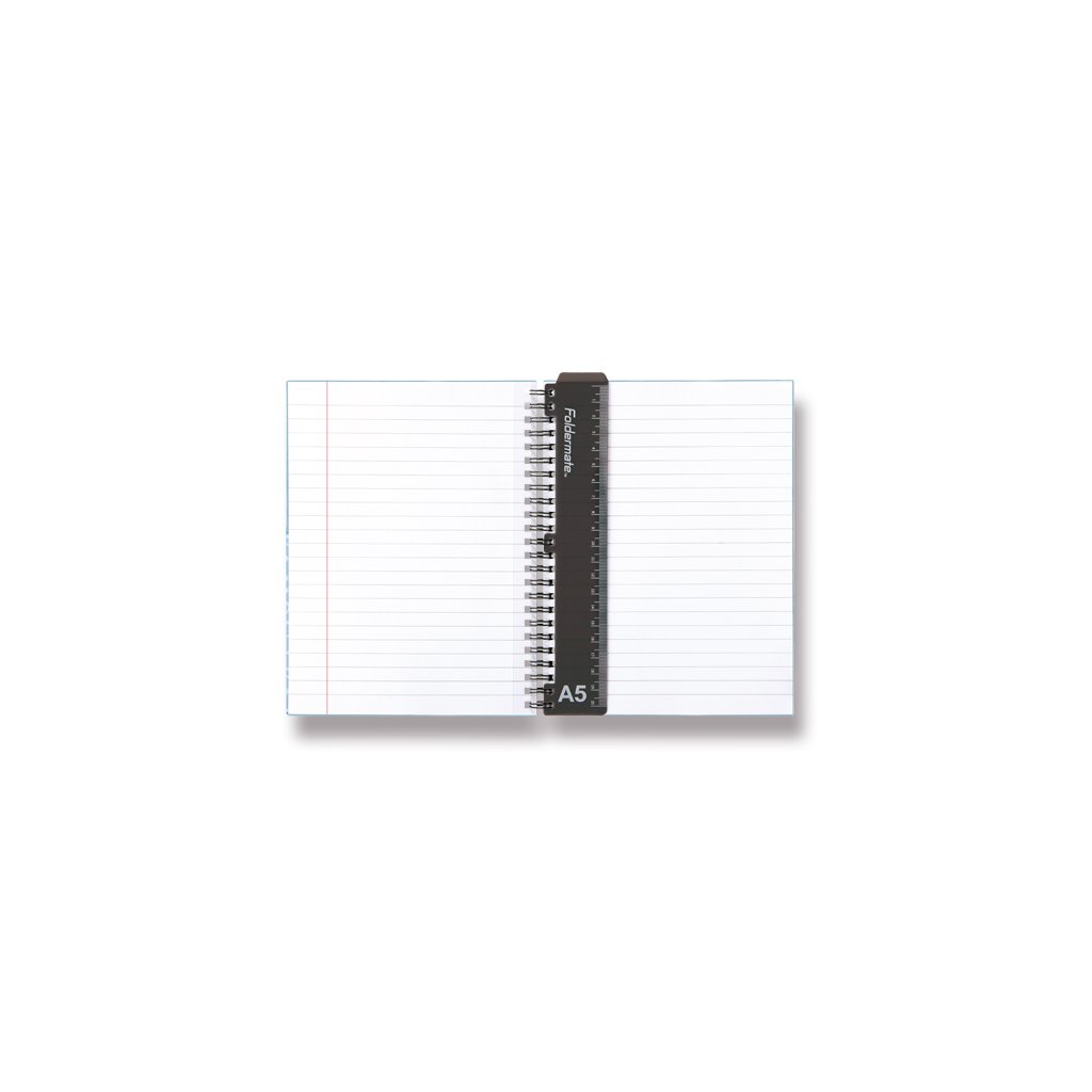 Stylový kroužkový blok s boční dvojitou spirálou z tvrzeného polypropylenu. Praktické uzavírání na gumičku. Obsahuje 80 ks 80g/m2 linkovaného papíru, přední kapsu a vyjímatelné pravítko, 20 cm.