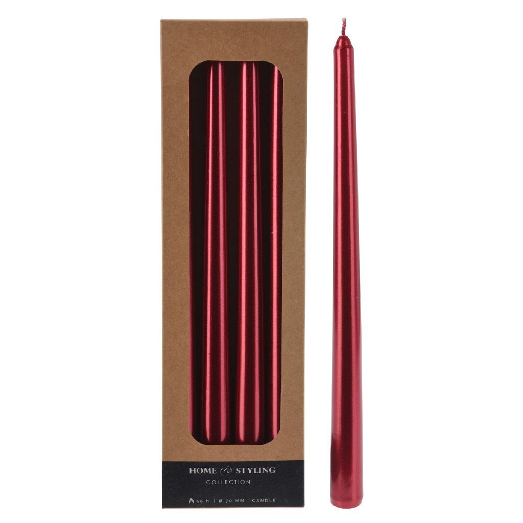 Elegantní metalické stolní svíčky vysoké 30 cm dodají vašemu interiéru sofistikovaný a slavnostní vzhled. Jejich štíhlý tvar je ideální na stůl, do květinových aranžmá nebo jako dekorativní prvek v různých kompozicích. Díky červené barvě skvěle doplní i vaši vánoční výzdobu a poslouží jako adventní svíčky.