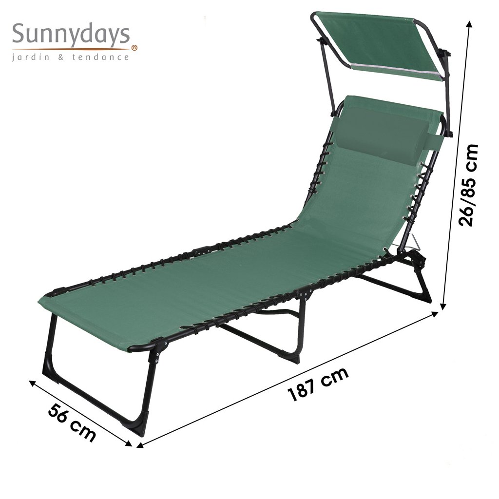 Lehátko plážové se stříškou, zelené SUNNYDAYS