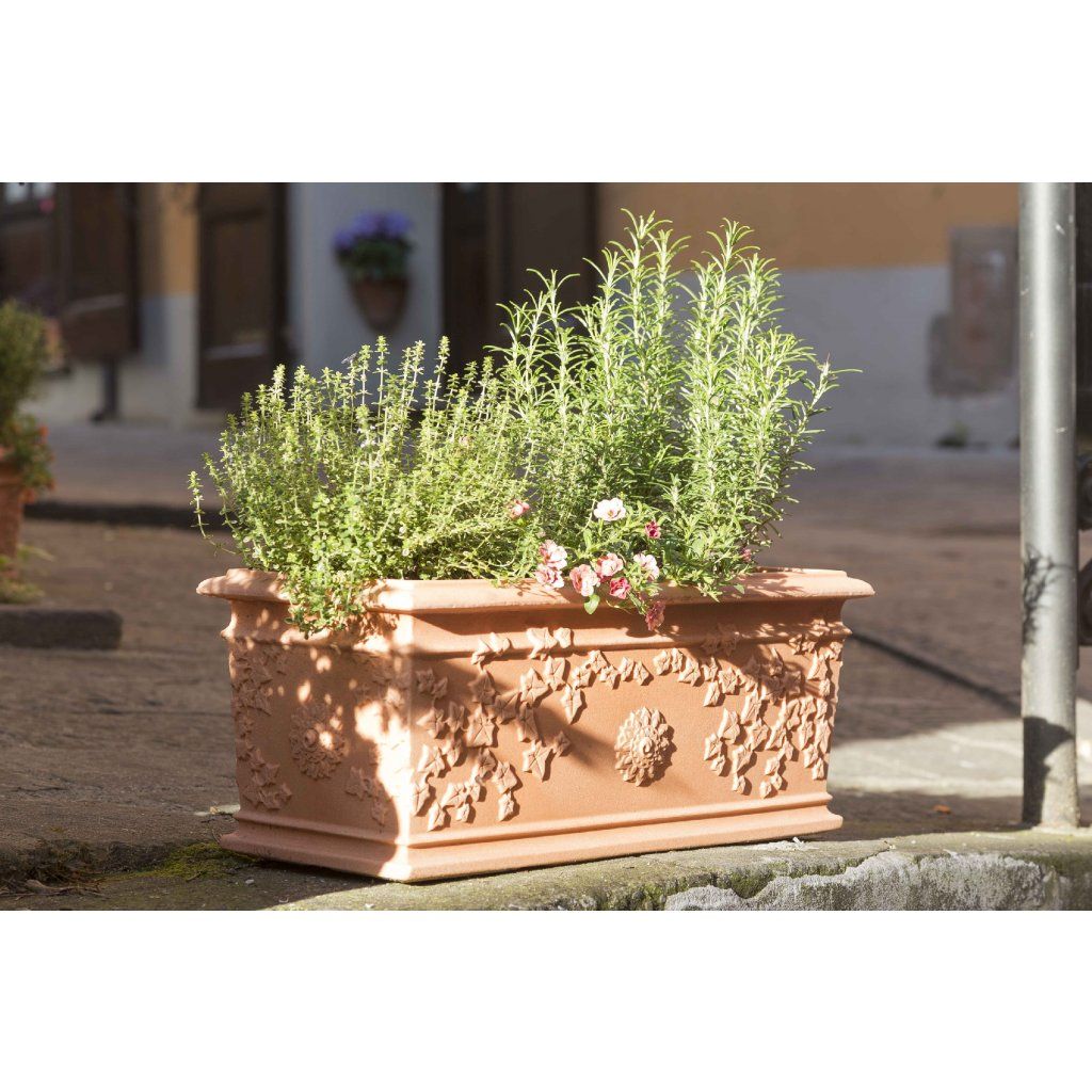 Elegantní truhlík VITE zdobený romantickým květinovým dekorem je k nerozeznání od keramických truhlíků. Je vyrobený z kvalitního mrazuvzdorného plastu speciální technologií rotačního formování. Květináč vypadá jako keramický. Odolává teplotním změnám v rozmezí -65°C až +86°C, nárazům i UV paprskům.