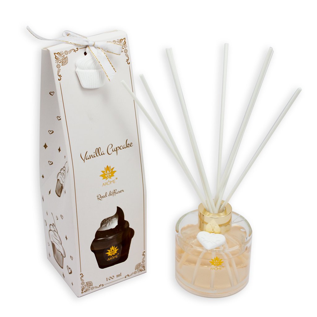 Aroma tyčinkový difuzér s vůní vanilkového dortíku (Vanilla cupcakes). Tato vůně působí blahodárně působí na celý organismus a harmonizuje psychiku.