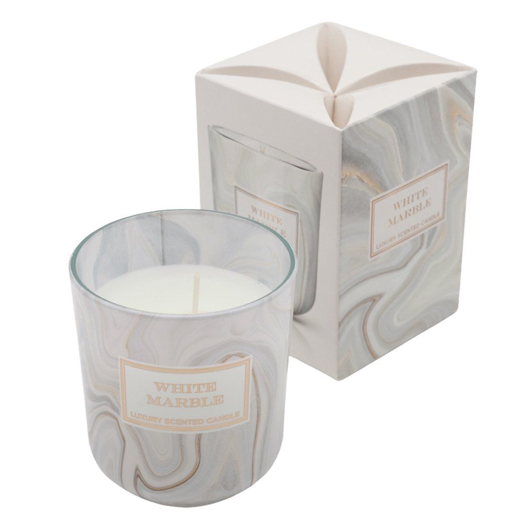 Rozjasněte svou náladu a projasněte své okolí vonnou svíčkou v nádherném bílém mramorovém skle. Nádherná bytová vůně uvolňuje uklidňující aroma a dodává vašemu domovu přirozený a rafinovaný nádech.